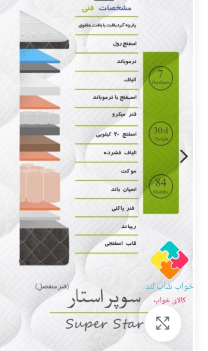 تشک خوشخواب مدل سوپر استار،سایز ۱۰۰×۲۰۰.فنر منفصل.یک نفره